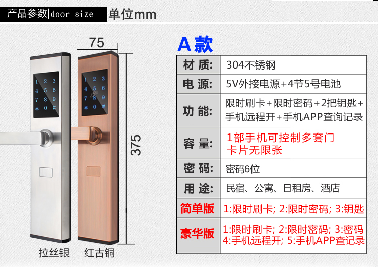 2018新款 智能門鎖日出租短租房公寓酒店磁卡電子鎖民宿賓館動態(tài)密碼鎖 B款紅:密碼+刷卡,杭州白領公寓出租智能門鎖、杭州合租公寓智能門鎖、杭州單身公寓出租智能門鎖、杭州租房智能門鎖